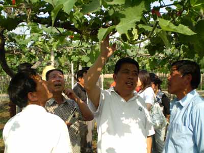 陜西果業局郭纏俊老師在葡萄園 陜西果業局郭民主教授在旬邑蘋果園 湖南澧縣富萬產品技術講座